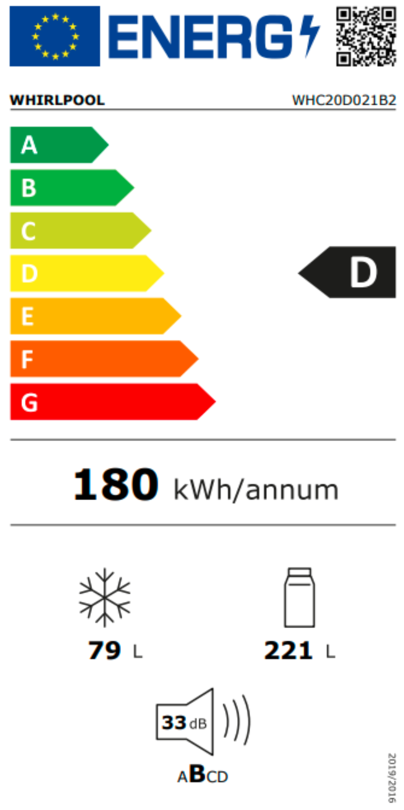 S energetickou třídou D vám tento spotřebič Whirlpool umožní využívat skvělý výkon i optimální spotřebu energie.