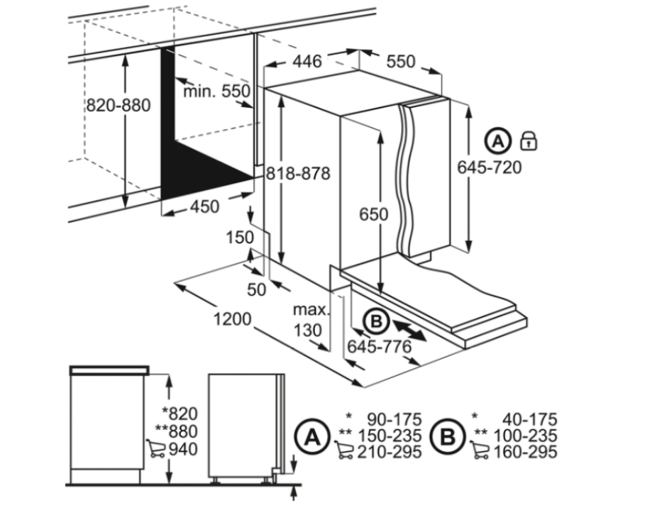 Vestavné rozměry V(min/max)xŠxH (mm): 820/900 x 450 x 550