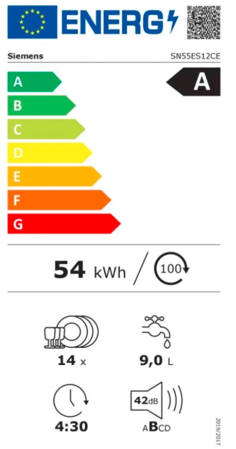 třída energetické účinnosti:¹ A energie² / voda³: 54 kWh / 9 l kapacita: 14 sad nádobí doba trvání programu:⁴ 4:30 h:min hladina hluku: 42 dB(A) re 1 pW třída hlučnosti: B hlu ...Více informací