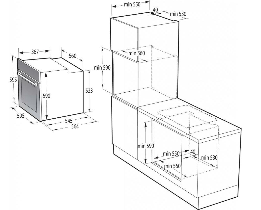 | Výška pro vestavbu cm | 59 |