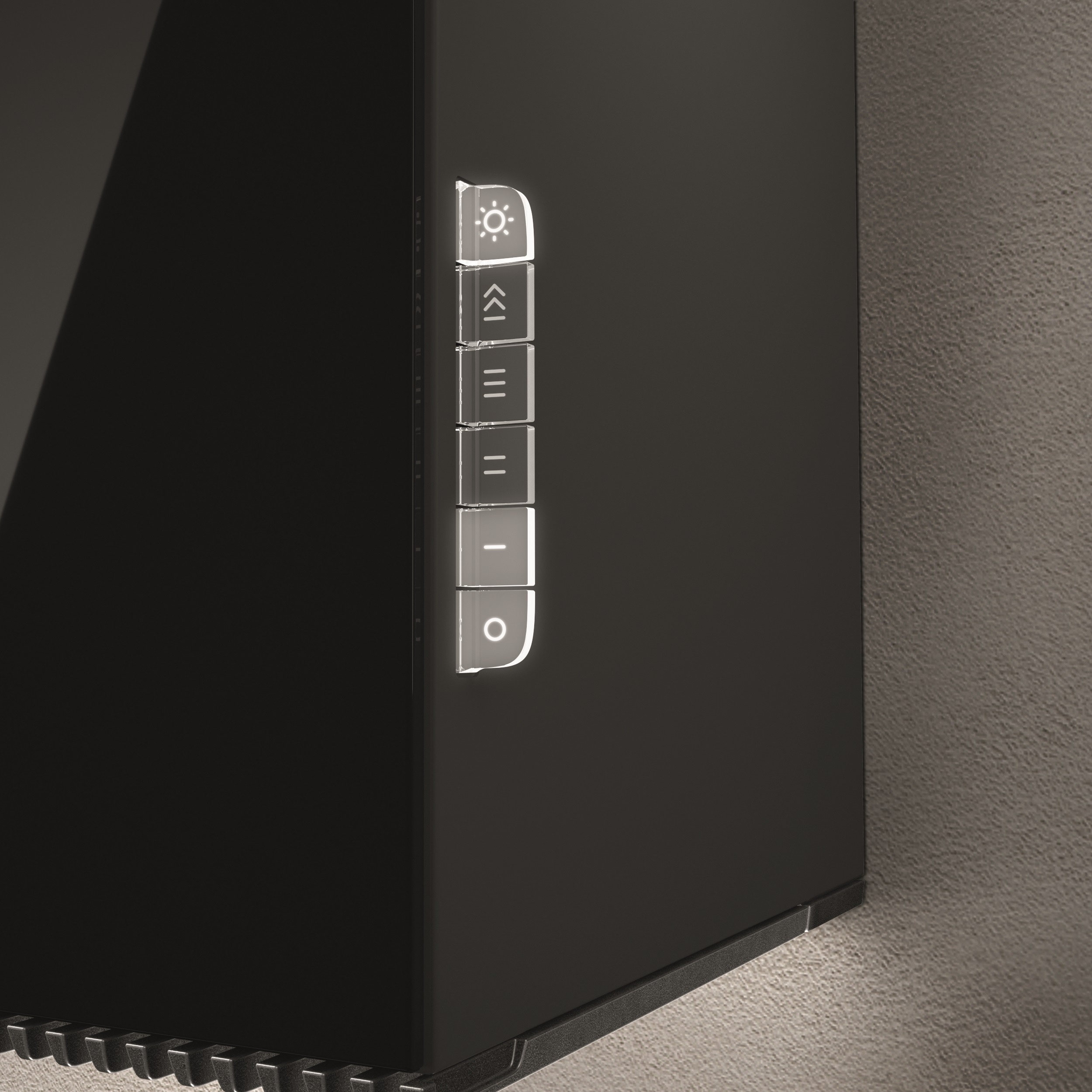"Estetická linearita se projevuje u hliníkových mřížek s litinovým efektem, které charakterizují všechny tyto odsavače par. Jsou snadno odstranitelné a jsou vybaveny blokovacím systémem, který zabraňuje náhodnému pádu.
