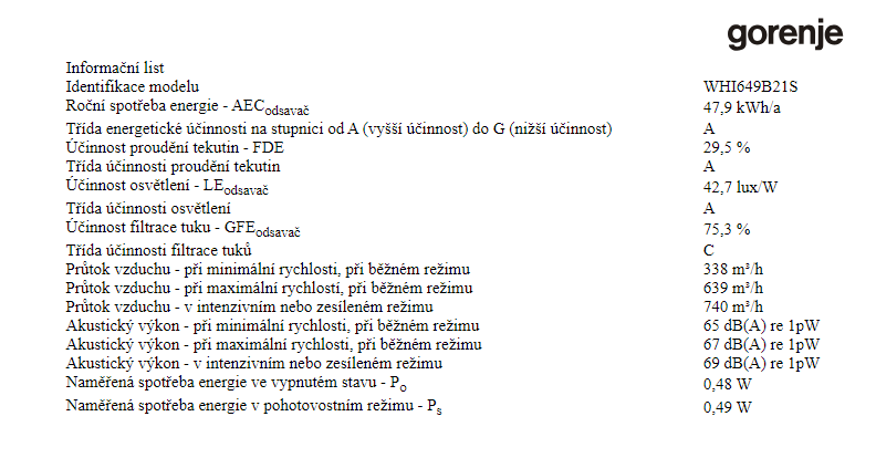 Kód uhlíkového filtru (nutné pro recirkulaci, není součástí odsavače)