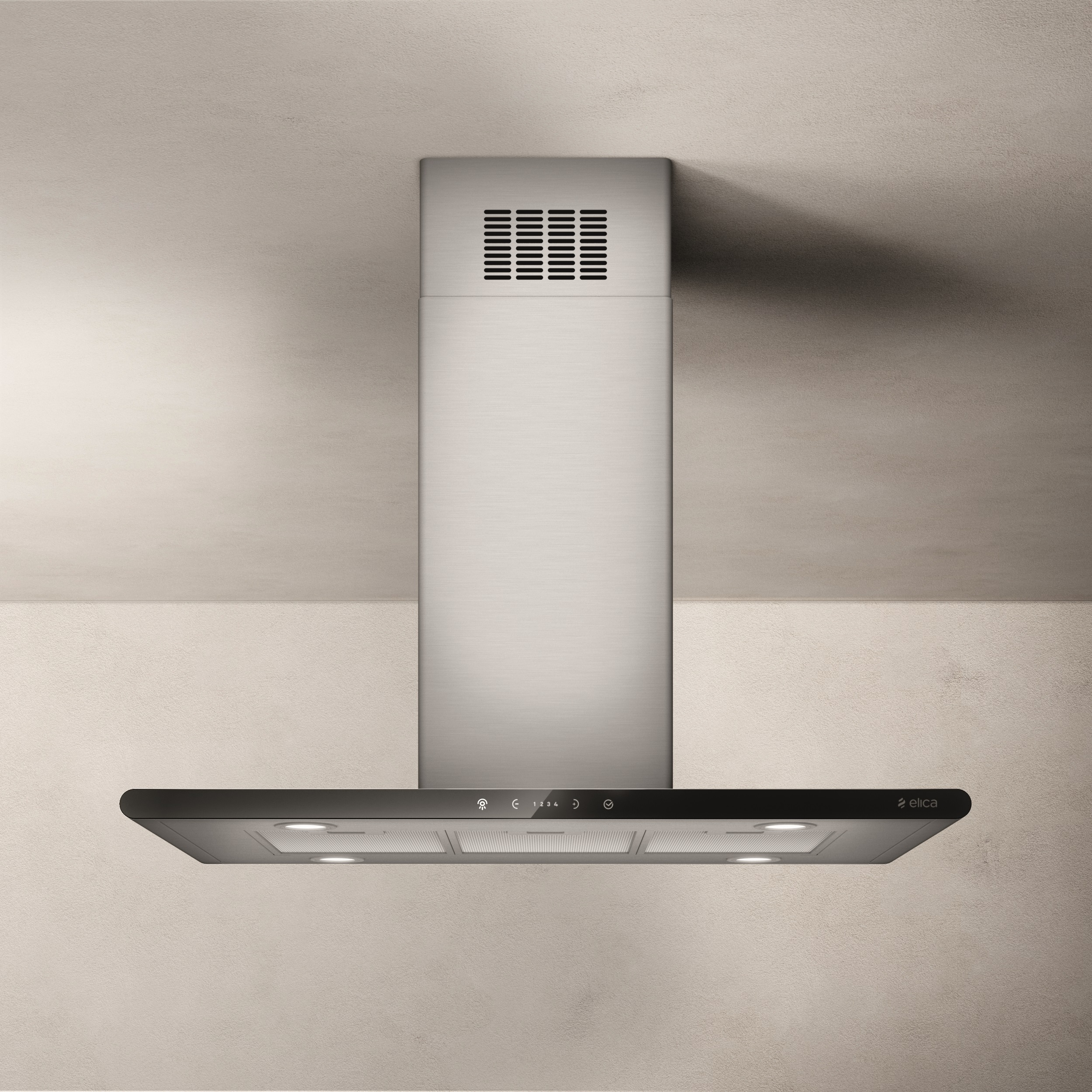 ELICA GALAXY  je ostrůvkový odsavač par (digestoř) z nerezové oceli doplněný o černé sklo. Odsavač par s výkonem 288-559 m3/h a v intenzivním výkonu dokonce 647 m3/h, mile překvapí hlučností pouze 52-73 db(A) a dotykovým ovládáním.