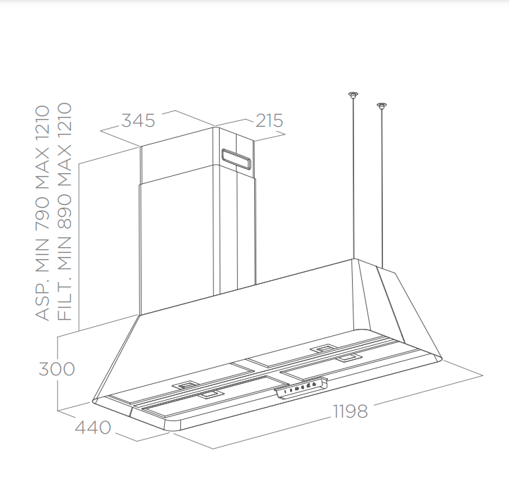 Odsavač par IKONA MAXXI PURE lze instalovat jako závěsný na lankách (recirkulace), s dekorativním komínkem (recirkulace i odtah), nebo na zeď se speciální montážní sadou.