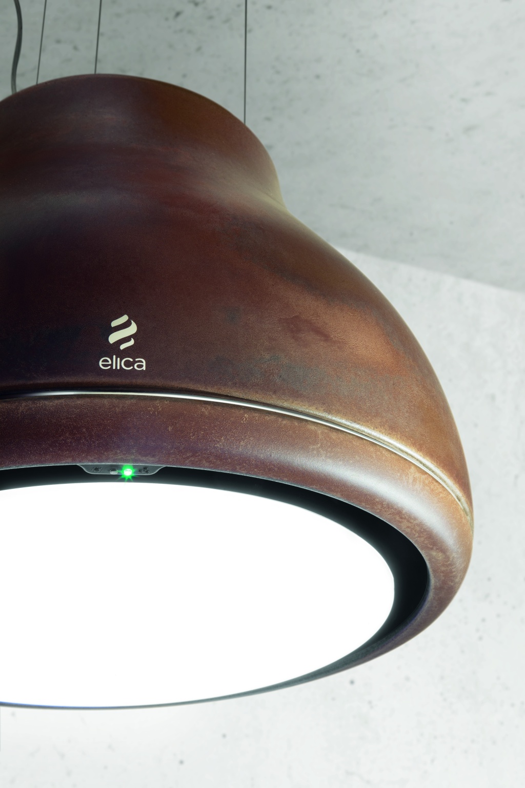 ELICA SHINING RUST je ostrůvkový odsavač par (digestoř) navržený designérem společnosti ELICA FABRIZIO CRISA . ELICA SHINING je vyroben z lakovaného kovu v povrchové úpravě rez. Odsavač par s výkonem 160-335 m3/h a v intenzivním výkonu dokonce 380 m3/h, mile překvapí velmi malou hlučností 36-56 db (A) a dotykovým ovládáním. Samozřejmostí je signalizace nutnosti čištění tukových filtrů. Dálkové ovládání je součástí balení.