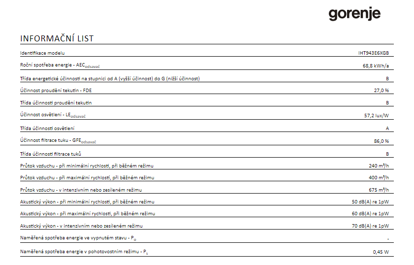 Kód uhlíkového filtru (nutné pro recirkulaci, není součástí odsavače)