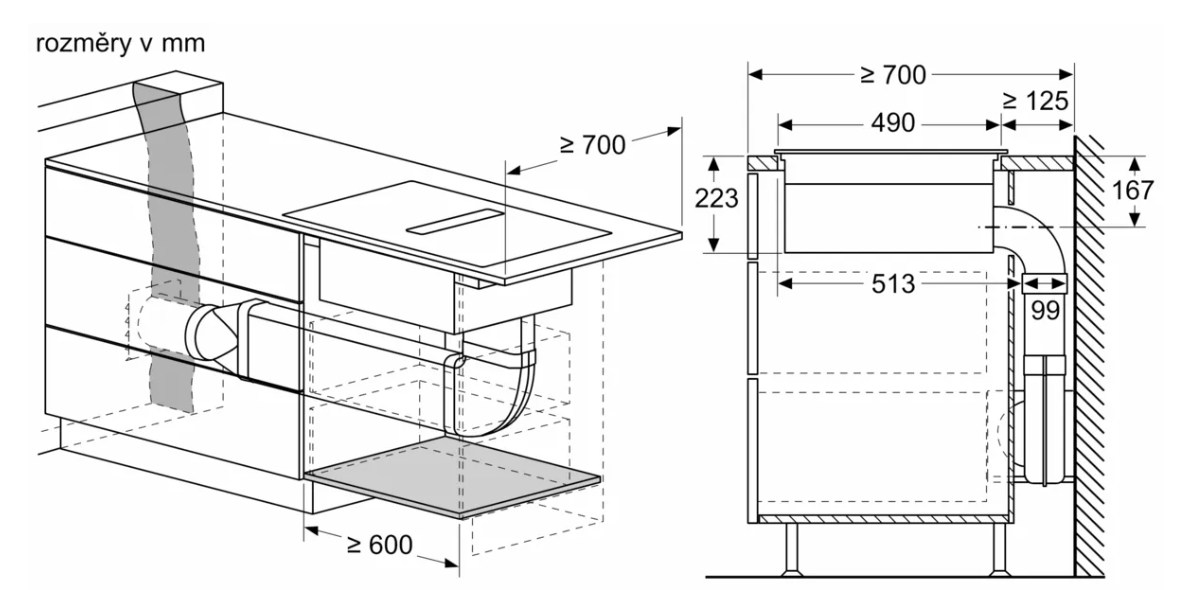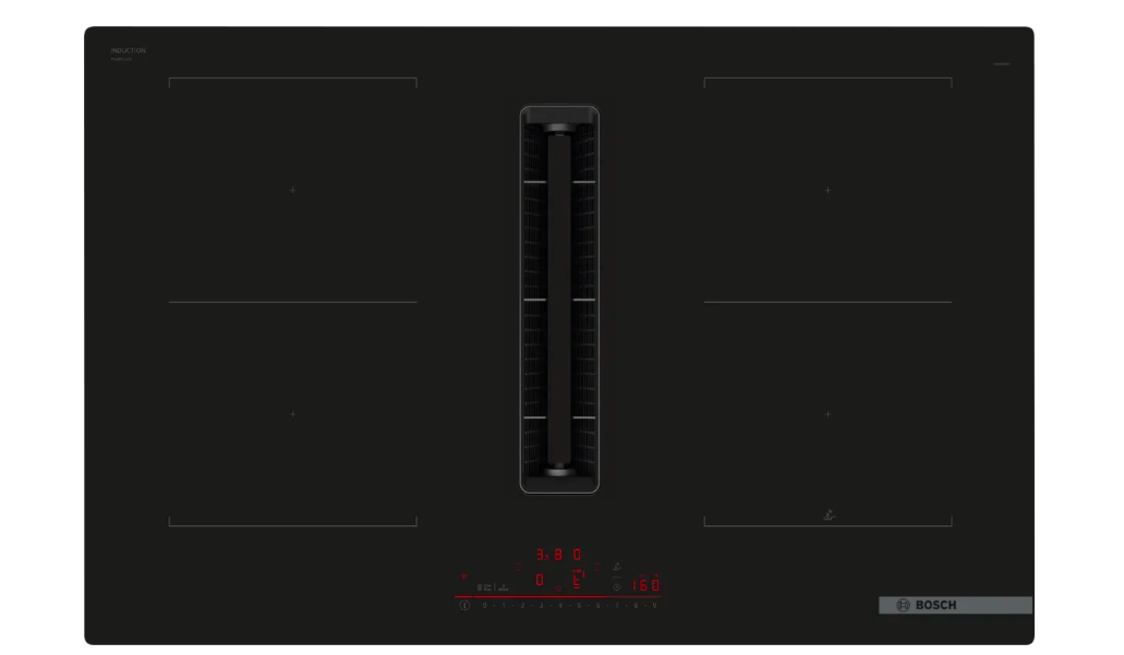 Ventilační modul integrovaný ve varné desce: odsává páru a pachy z vaření přímo u zdroje.