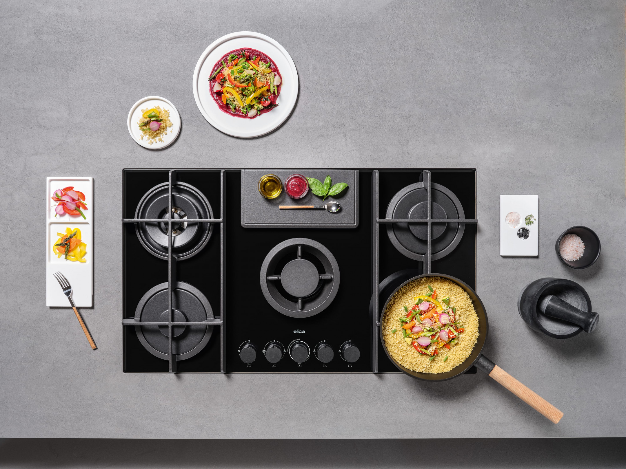 ELICA NIKOLATESLA FLAME EVO plynová varná deska s integrovaným odsavačem par od Elica navržený designérem společnosti ELICA FABRIZIO CRISA představená na veletrhu EUROCUCINA 2024. ELICA NIKOLATESLA FLAME EVO je vyroben z černého bezpečnostního skla. Systém odtahu, vybavený centrálním ventilátorem, může dosáhnout velmi vysoké úrovně výkonnosti z hlediska zachytávání výparů, úrovně hluku a energetické účinnosti. K dispozici je jak v režimu odtahu, tak i recirkulaci, varná deska byla navržena tak, aby dobře zapadla do jakéhokoliv typu obytného prostoru. Varná deska je vybaven velice pohodlným otočným ovládáním.