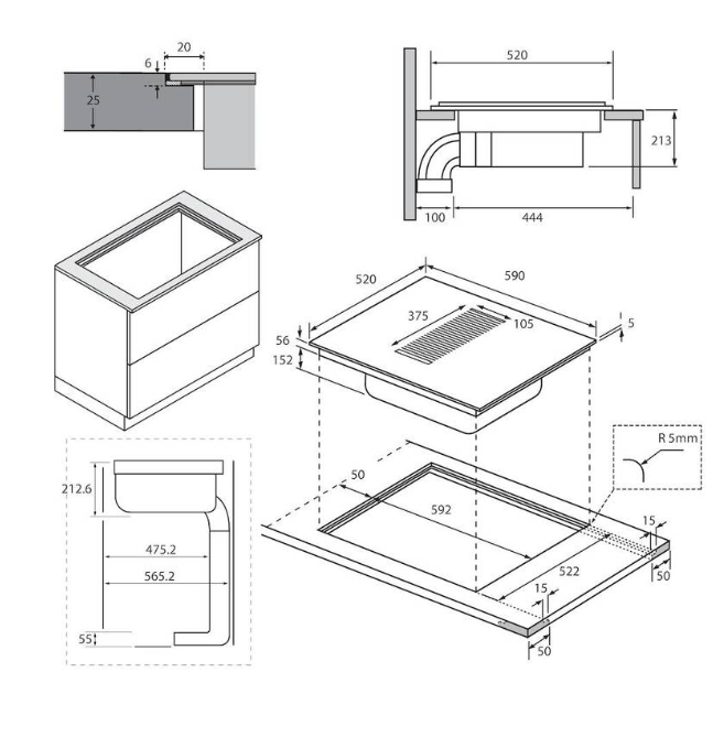 Vestavná indukční varná deska ID Dual Series 6 s odsavačem par – šíře 60 cm