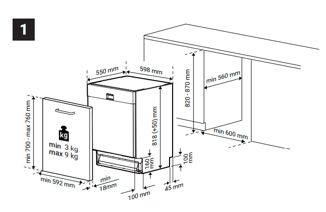 - Rozměry (V × Š × H): 818 × 598 × 550 mm