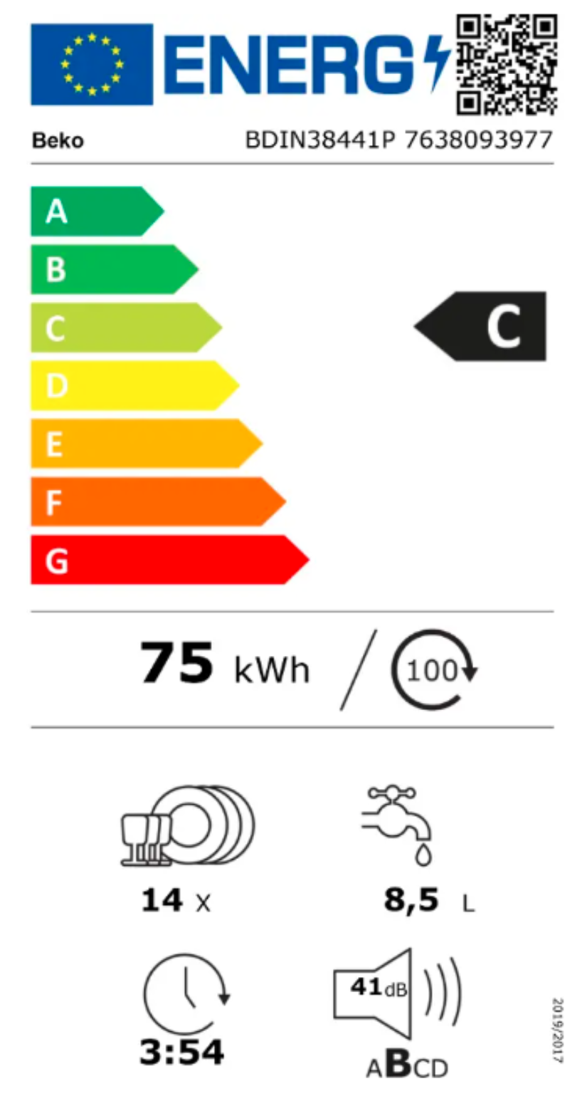 Vestavná myčka BEKO BDIN38441P Základní informace: - Druh spotřebiče: Vestavná myčka nádobí - Typ konstrukce: Vestavná, 60 cm - Energetická třída: C - Označení spotřebiče: BDI ...Více informací