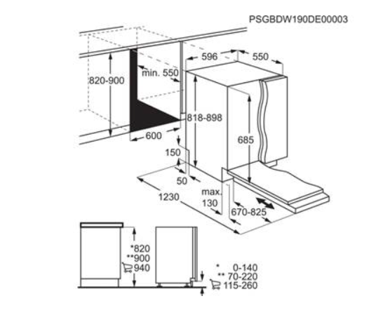Vestavné rozměry V(min/max)xŠxH (mm): 820/900 x 600 x 570