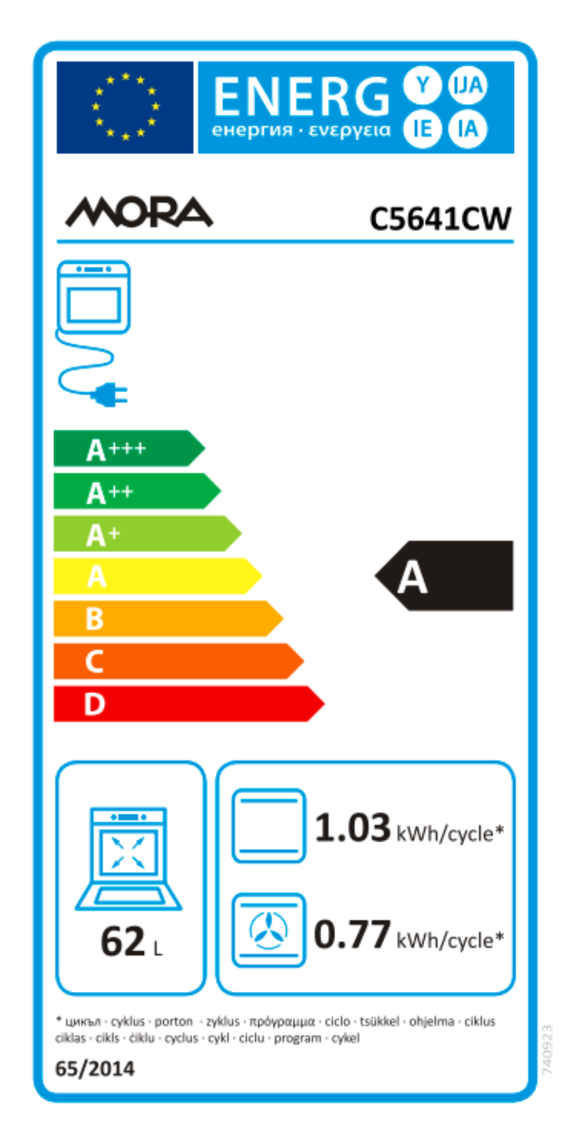 | Objem trouby L | 62 |